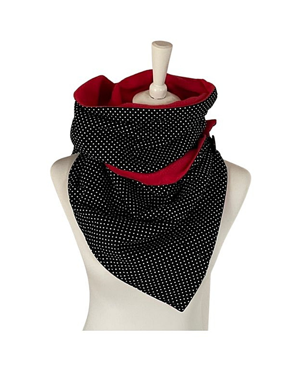 - Farbkombination schwarz-weiss gepunktet, Fleece rot