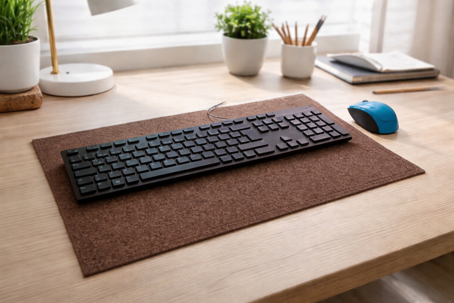 Gestalte deinen Arbeitsplatz stilvoll, ruhig und funktional. Diese handgefertigte Filz Schreibtischunterlage schützt deinen Schreibtisch zuverlässig vor Kratzern, Flecken und Abnutzung und sorgt gleichzeitig für eine warme, aufgeräumte Atmosphäre im Büro oder Homeoffice. Das feste Filzmaterial bietet eine angenehme Haptik und schafft eine stabile Unterlage für Tastatur, Maus und Laptop.