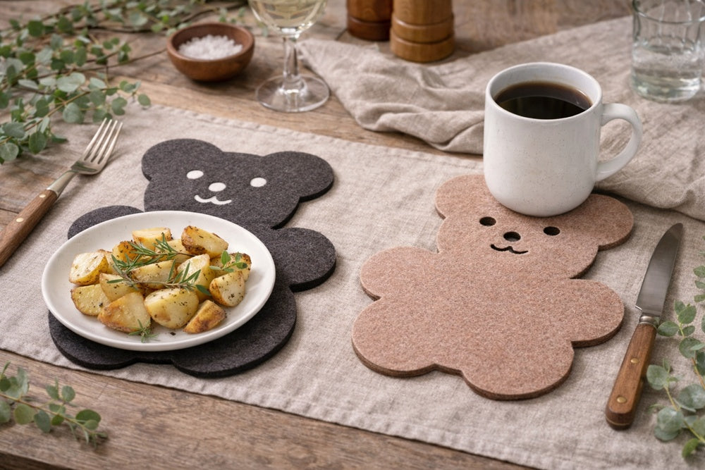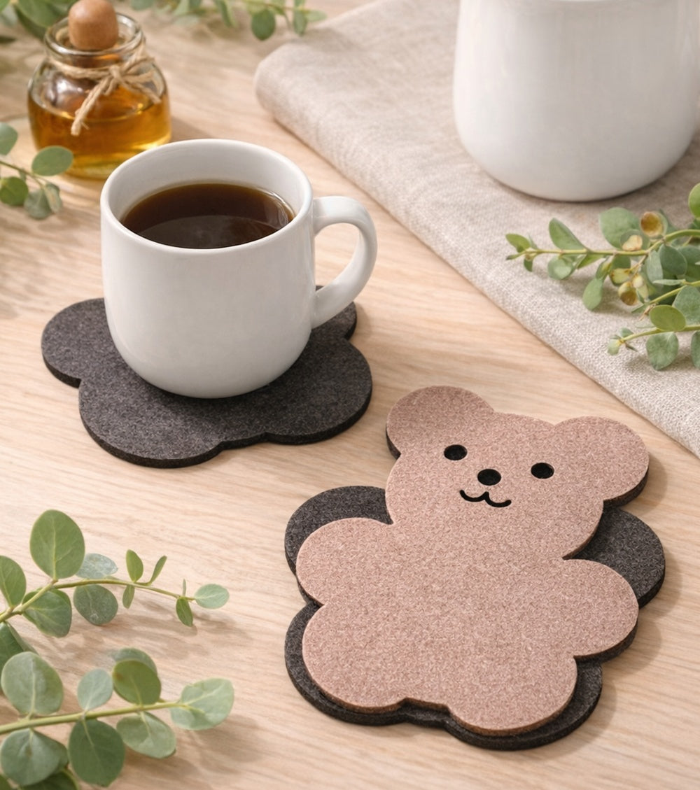 Die formstabilen Bären-Untersetzer aus hochwertigem Filz schützen deine Möbel zuverlässig vor Flecken, Kratzern und Hitzespuren – und sind gleichzeitig ein echter Hingucker.