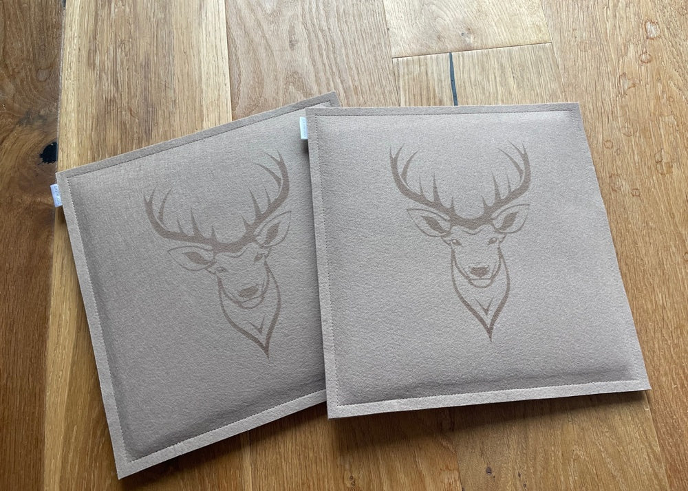 Unser handgefertigtes Sitzkissen aus Filz mit kunstvoll gelasertem Hirschmotiv verbindet traditionelles Handwerk mit modernem Design. Die filigrane Lasergravur macht jedes Kissen zu einem echten Hingucker – rustikal, stilvoll und zeitlos schön.