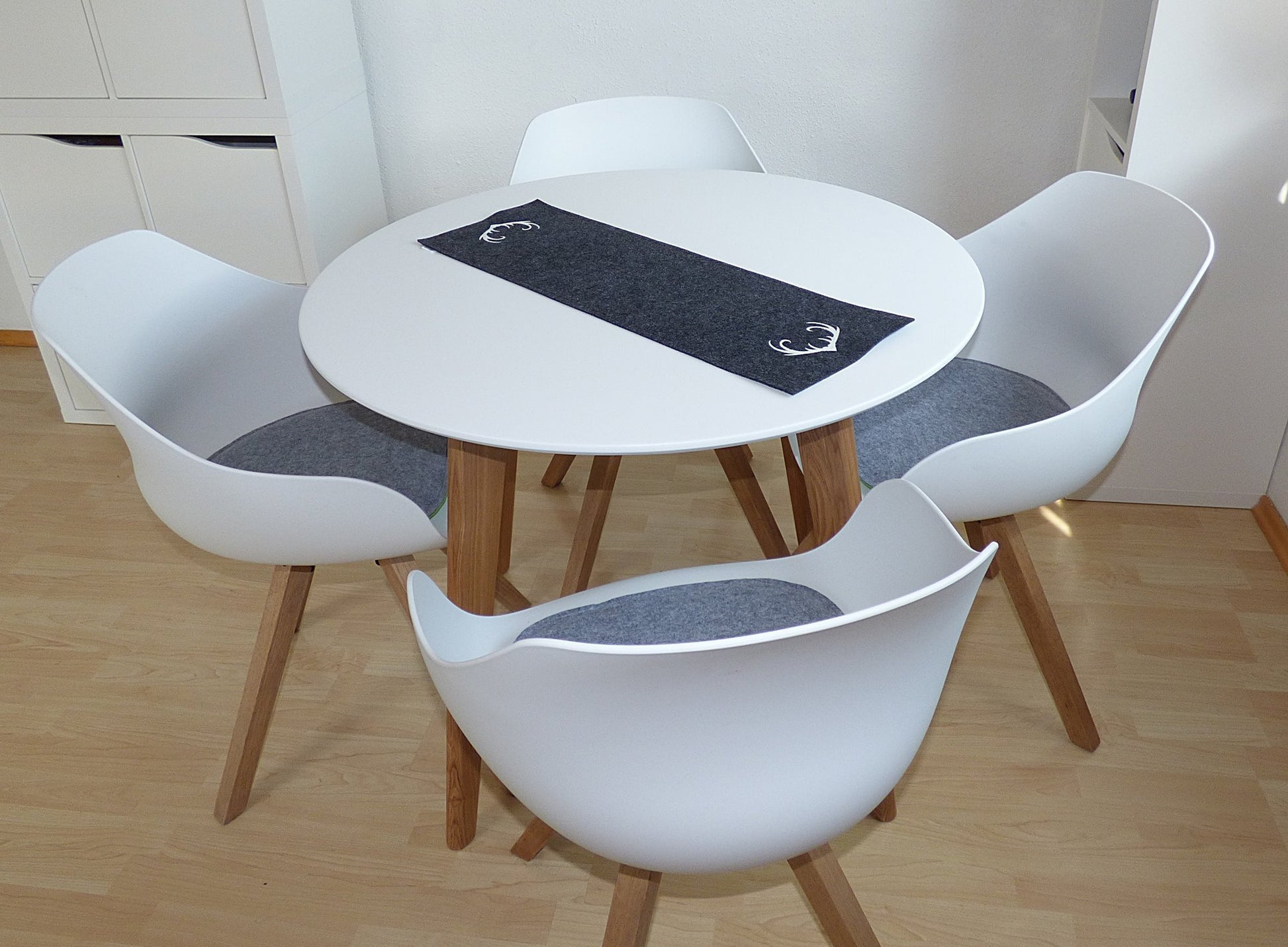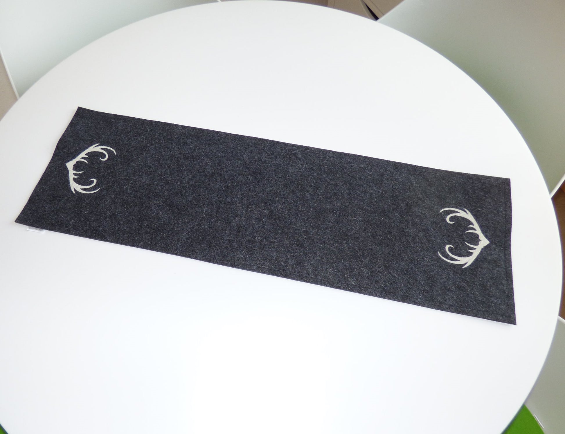 Bringe ein Stück Natur und handwerkliches Geschick auf Deinen Tisch mit diesem liebevoll handgefertigten Tischläufer aus hochwertigem Filz. Jede Naht und jedes Detail, insbesondere das aufwendig bestickte Hirschgeweih, wurden mit Sorgfalt und Leidenschaft kreiert.